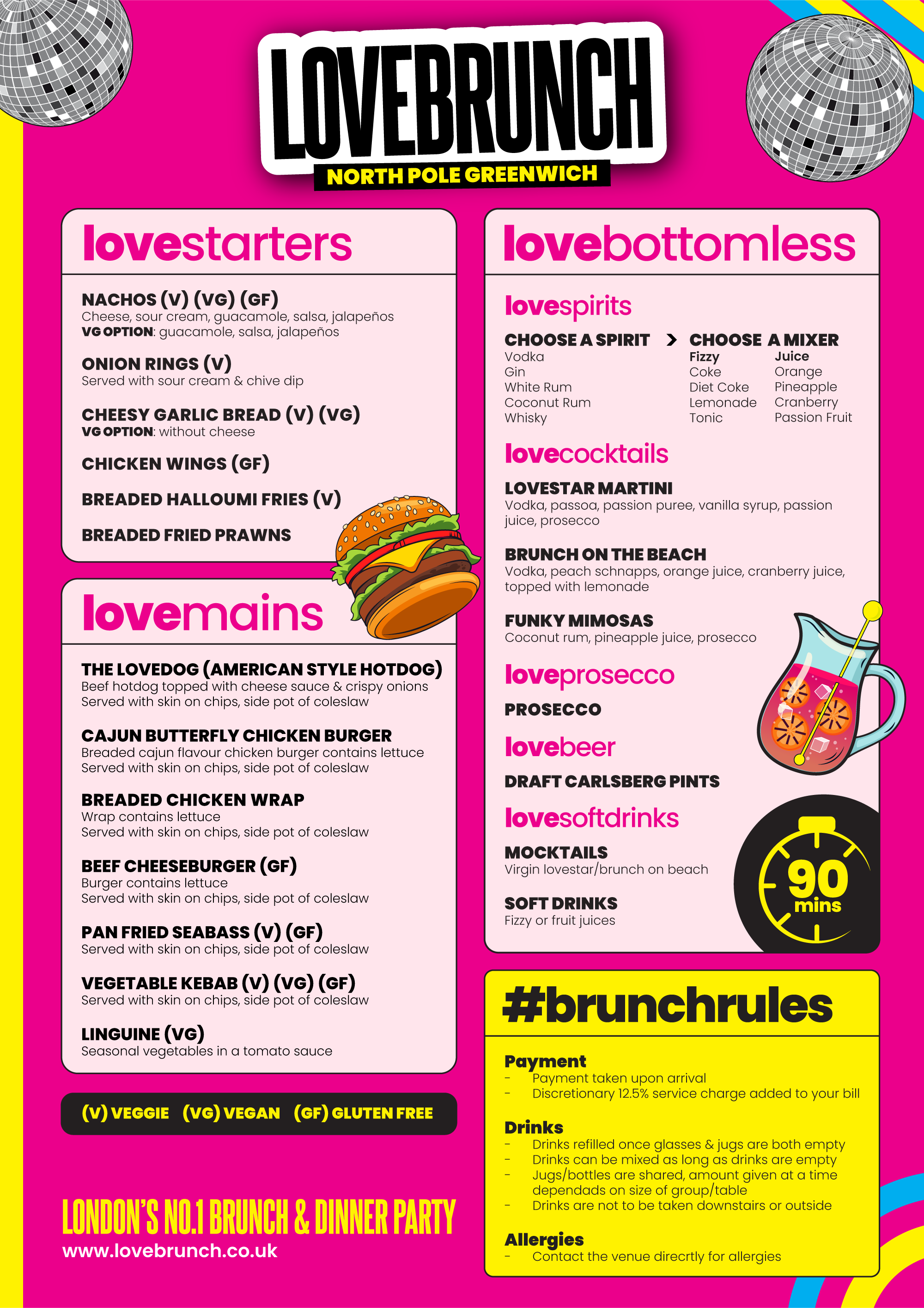 - 90 minutes bottomless drinks - drinking time begins at the start of the event
